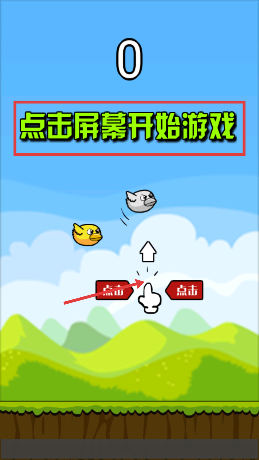 1、点击【点击屏幕开始游戏】区域,进入游戏,开始操控小鸟挑战。