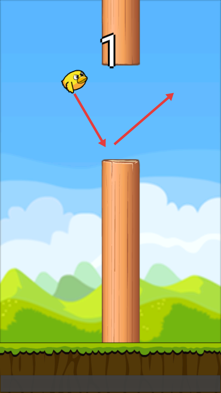 2、操控小鸟躲避木质柱子,成功穿过可获得分数,如先获取【1】分,逐步积累。