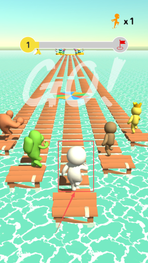 1、开启水上跑酷:进入游戏选择关卡,明确 “躲避危险、超越对手、争夺高名次” 目标,熟悉角色左右移动、跳跃躲避的基础操作。