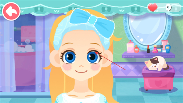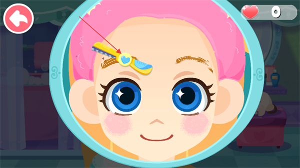 2、进入美妆环节,使用梳子道具整理公主的头发。