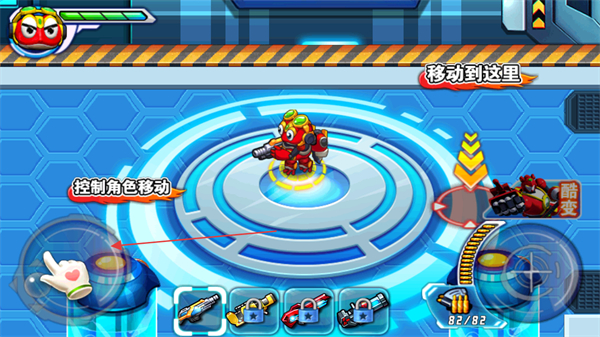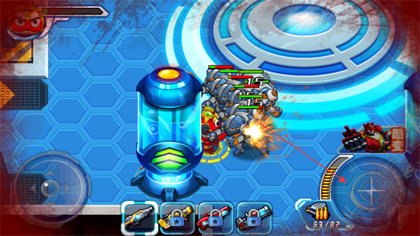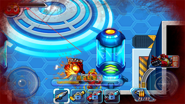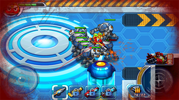 2、当遇到敌方机器人靠近时,点击攻击按钮,操控角色使用武器射击敌人。