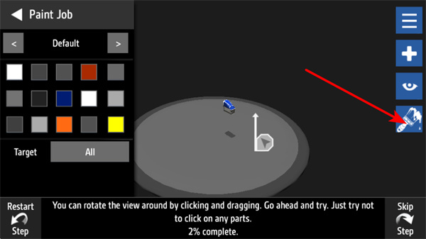 2、涂装操作,点击涂装工具按钮,进入涂装界面,选择颜色对机械部件进行涂装,改变其外观。