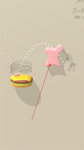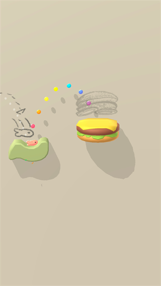 1、操控小鱼儿从汉堡处出发,朝着粉色物体方向移动。