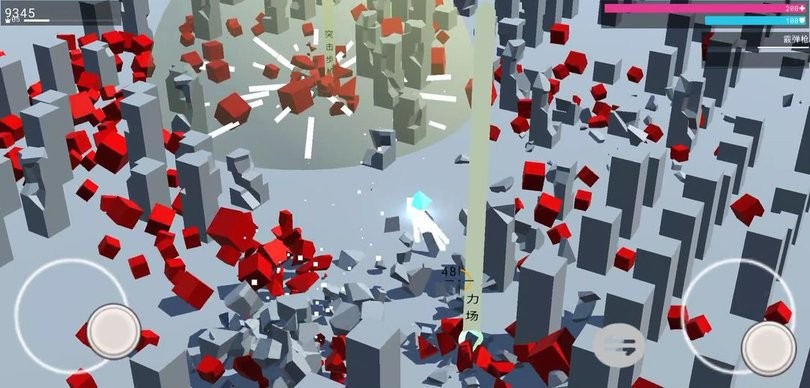 1、持武器战方块:选择高斯炮等武器,瞄准潮水般袭来的小方块射击,根据方块密度调整射击节奏,快速清理威胁。