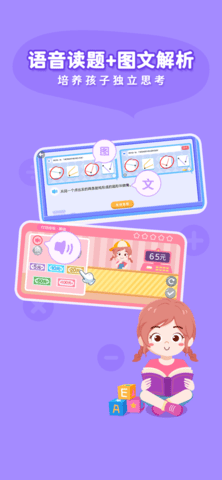 1、提供带文本和文本分析的语音阅读问题,培养独立思考能力,每天提供同类型问题的自动收集和智能推送。