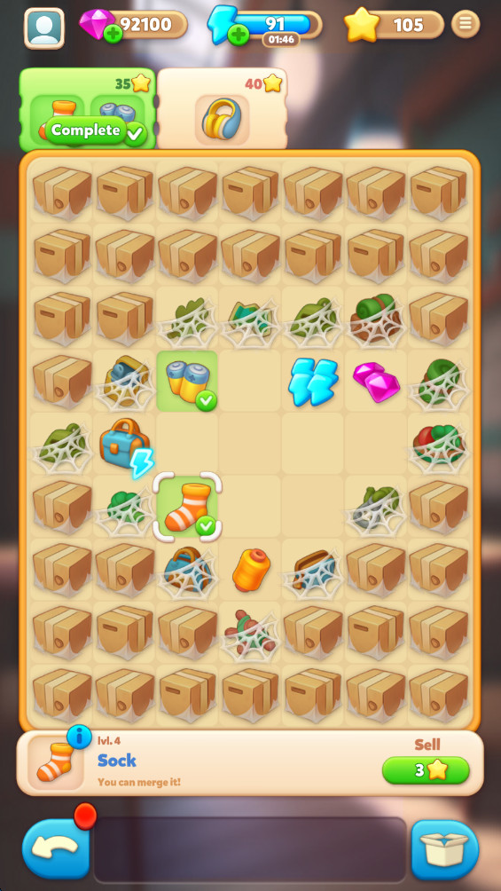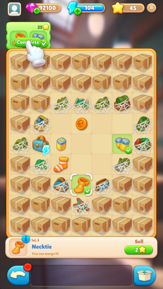 2.能够合并的物品非常多,拖动所有物品进行合并,完成任务。