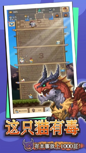 《这只猫有毒》这款游戏里的挑战是有充满了令人兴奋的战斗,而且还有许多特殊的功能和惊险的冒险等你来玩。玩家你也是在一个充满陷阱的塔中,你必须运用你的智慧和技能来克服所有的关卡,逐层爬上塔,最后打败强大的boos。