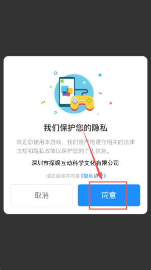 1、首先,阅读并同意隐私政策,点击“同意”按钮以进入游戏。