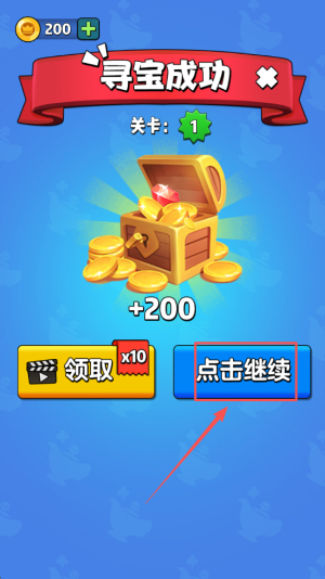 4、最后,完成关卡后,点击“点击继续”按钮进入下一关,或领取奖励。