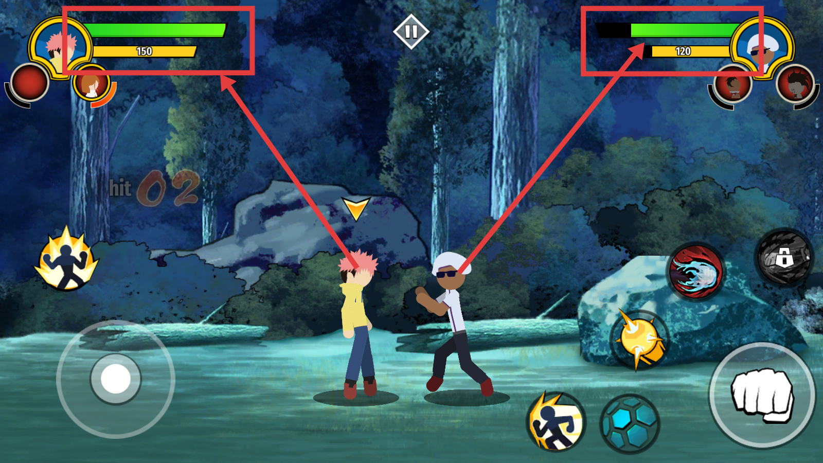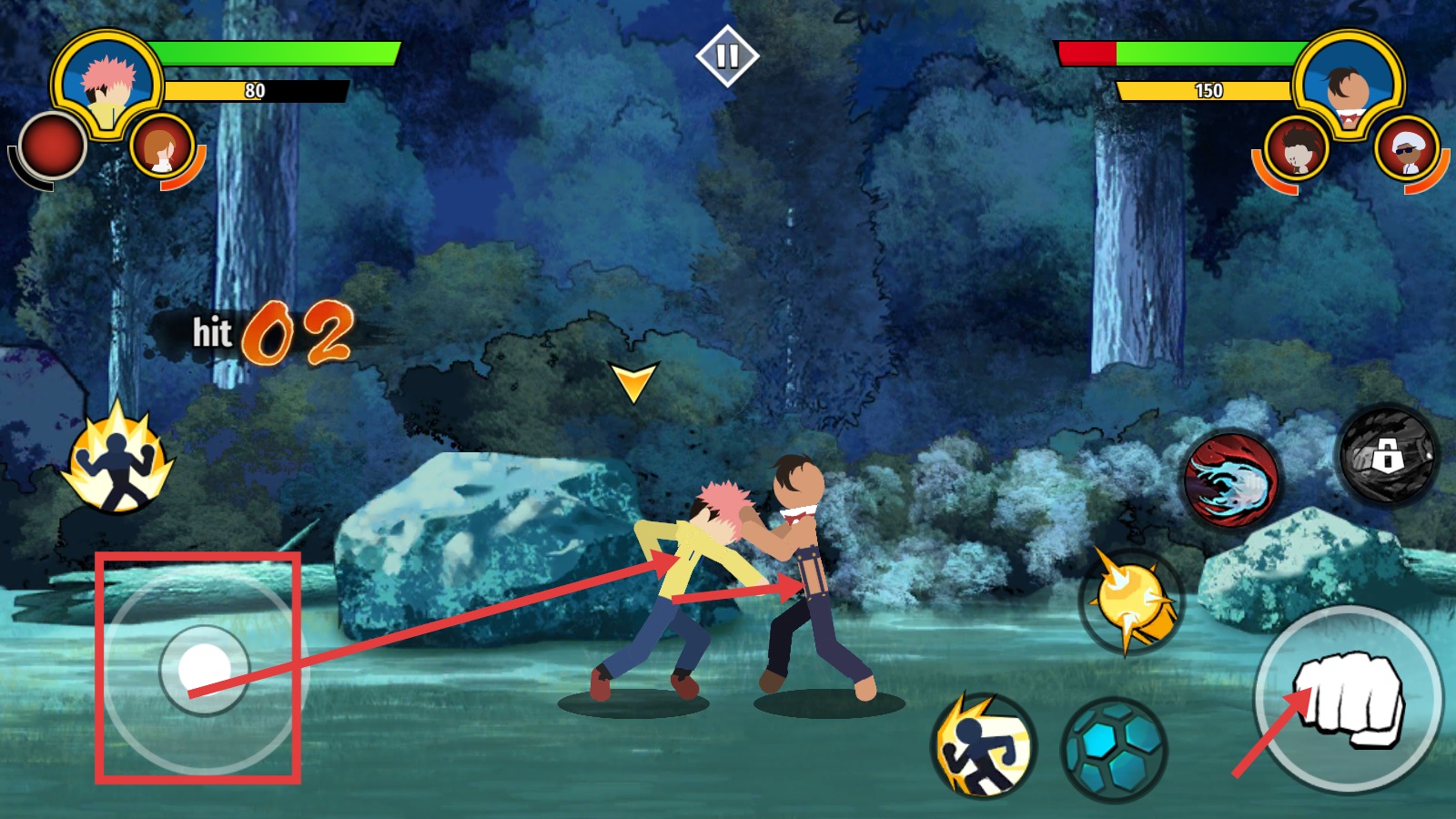2、战斗中左侧虚拟摇杆移动角色,右侧【拳头】按钮攻击,连招可触发【hit-02】连击效果,提升伤害输出。