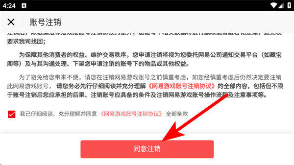 4、勾选同意注销协议后,点击同意注销,完成账号注销的操作。