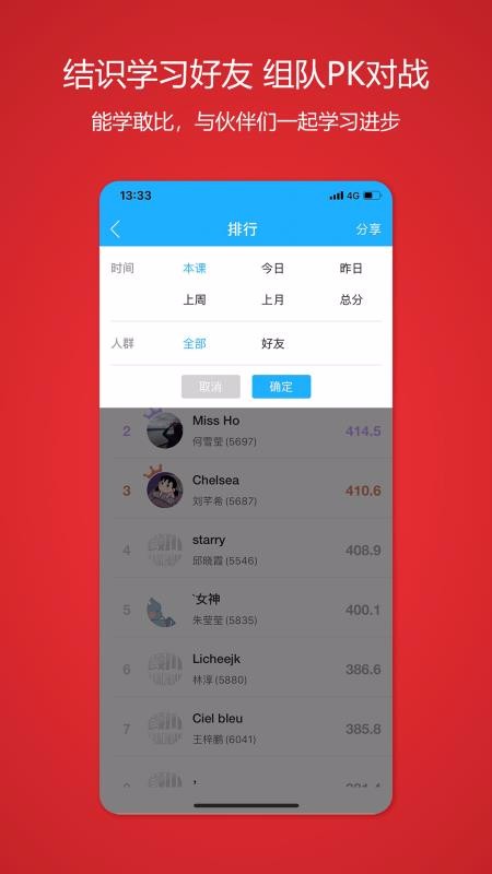 3、提供学习排行榜,可以随时查看我的排名和好友排名,适合学习符合期望。