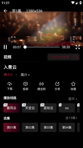 1、大家进入到软件之后需要先找到要下载的视频,例如小编现在想下载入青云这部剧,找到后点击进入播放界面。