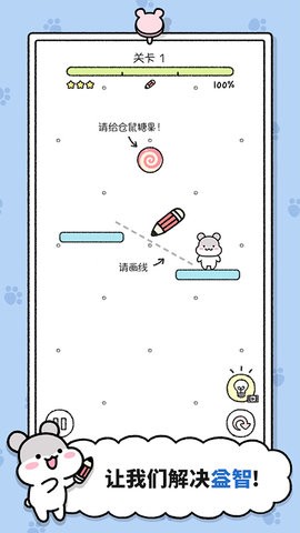 3、通过划线帮助仓鼠吃到糖果,完成关卡获得奖励。