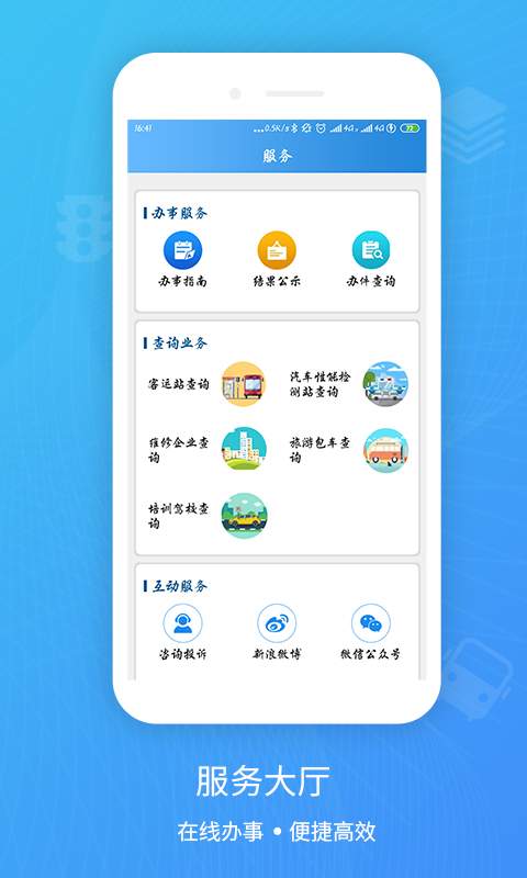 2、具有丰富的查询业务功能,涵盖车辆性能检测站查询、维修企业查询和旅游包车查询;