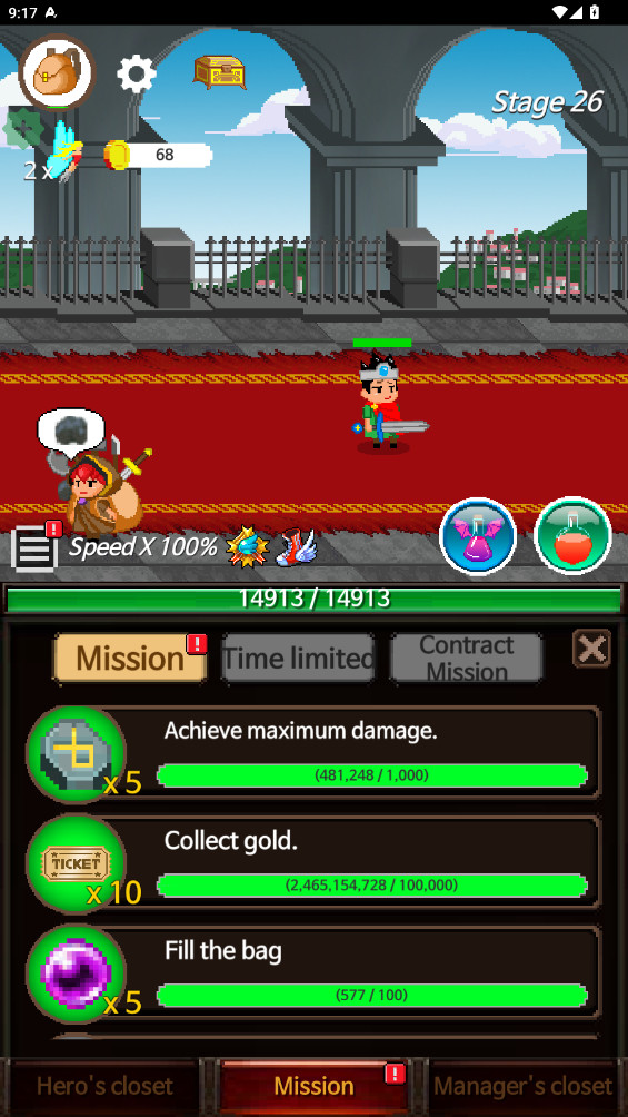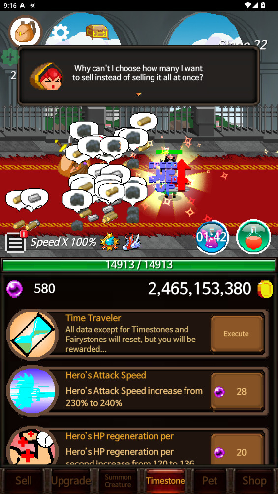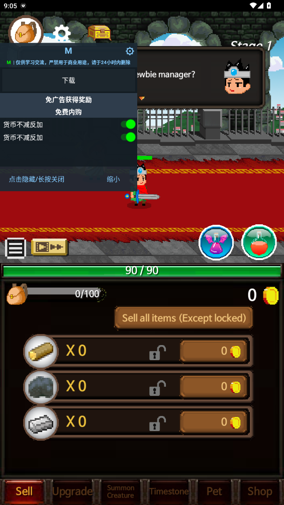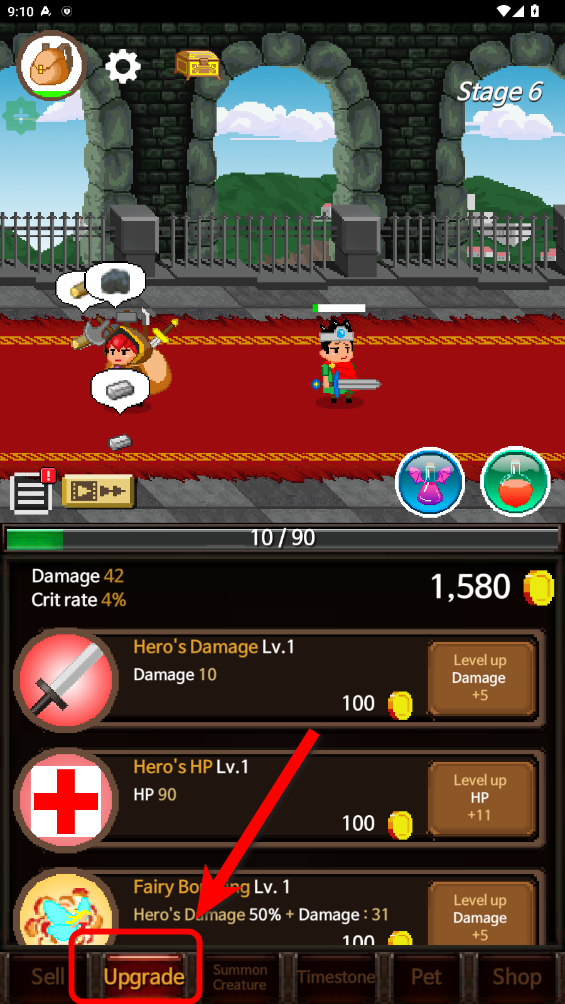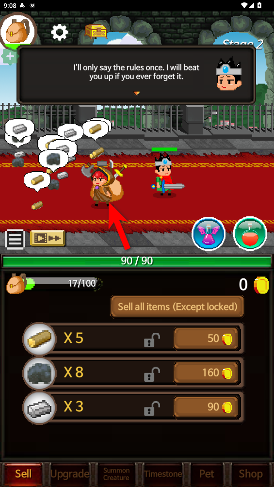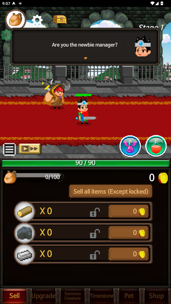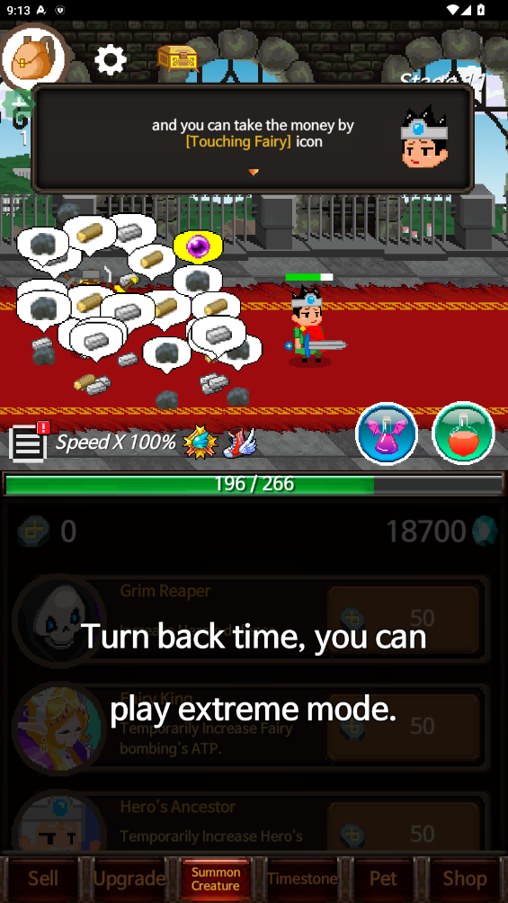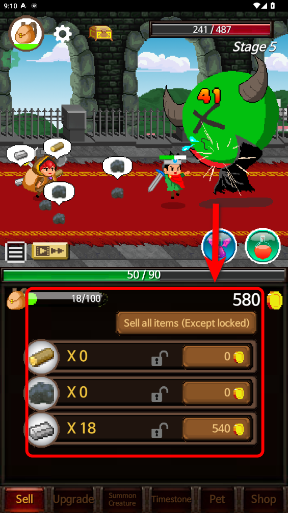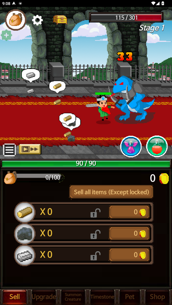 2.进入之后第一回合即将开始,勇士会砍向怪物,其中会掉落很多材料。