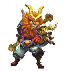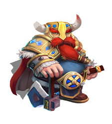 技能:向3个目标丢出战锤,造成100%伤害并晕眩3秒。