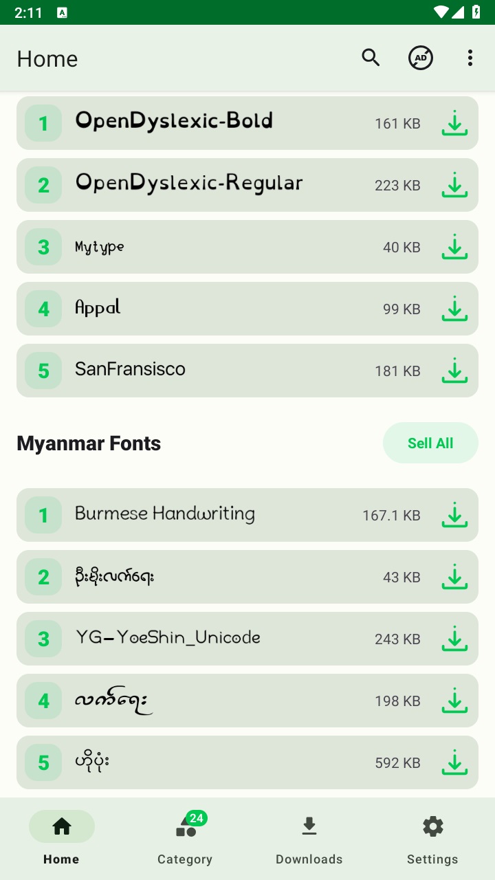 1.请在本网站本页面下载安装最新版本的zfont3 app,打开软件进入首页。