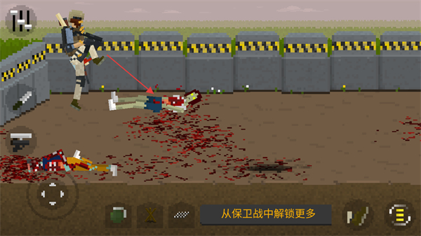 街头场景的像素还原贴近现实,搭配僵尸游荡的设定,让用户仿佛置身真实的僵尸防御现场,增强战斗代入感。