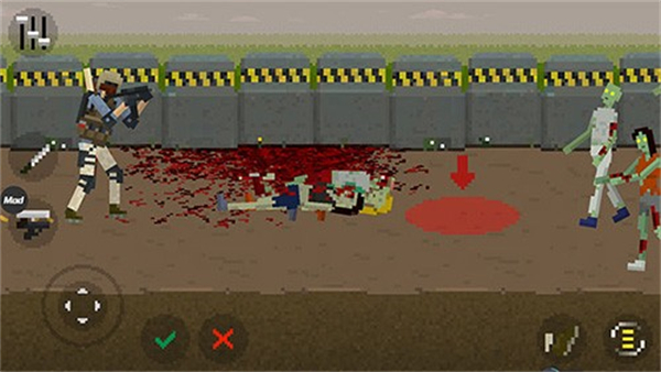 1、用左下角摇杆移动角色,靠近僵尸,准备攻击。