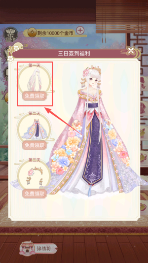 1、首先,查看游戏中的签到福利,点击“免费领取”按钮获取每日奖励。