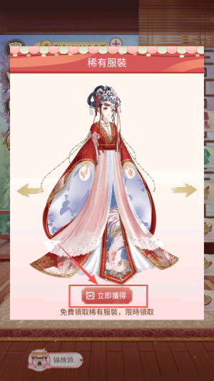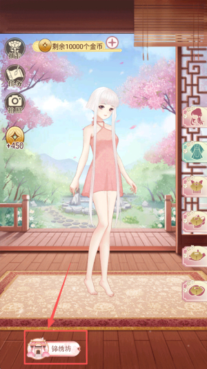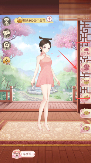 3、然后,点击“锦绣坊”按钮进入服装店,选择并试穿不同的服装和配饰。