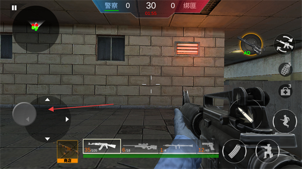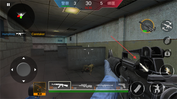 3、战斗中可点击右侧的道具按钮,如切换武器、使用手雷等,增强战斗力。