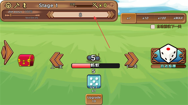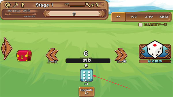 2、点击勇气骰子,根据出现的点数,对“蚂蚁”敌人造成相应数值的伤害。