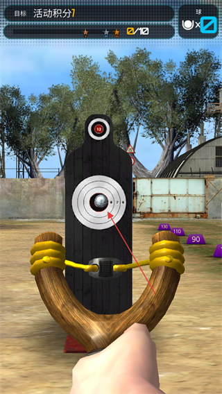 2、进入游戏后,瞄准靶心,发射弹弓上的球,尽量命中靶心获取高分。