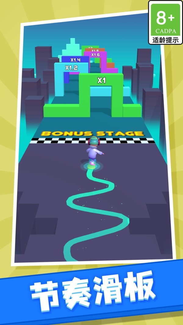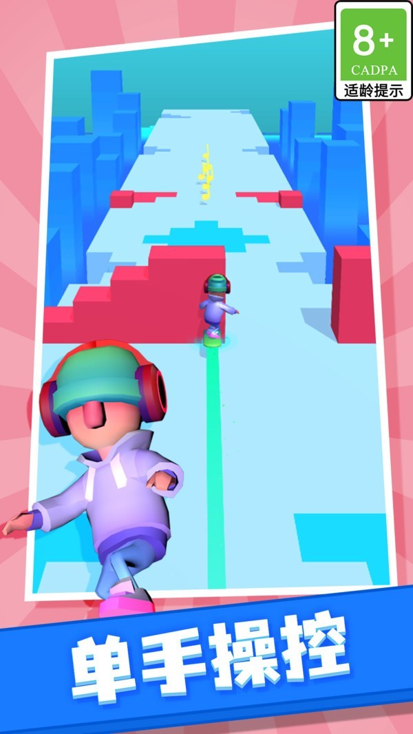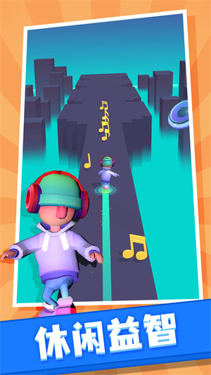 3、持续把握音乐节奏完成所有赛道挑战,积累积分解锁新关卡、新角色与酷炫滑板,不断刷新闯关成绩,感受竞速与音乐结合的极致乐趣。