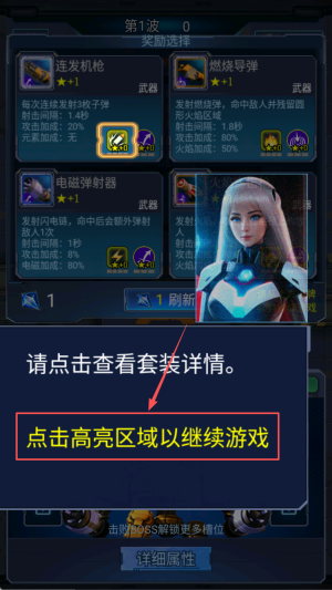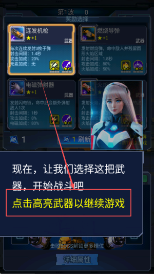 1、如何选择合适的武器:在奖励选择界面,查看不同武器的属性,点击高亮区域选择你想要的武器。