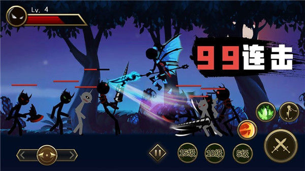 2、操作体系注重技巧性,要求灵活发挥每个火柴人特点,实现暴击连连的畅快战斗体验,考验反应速度。