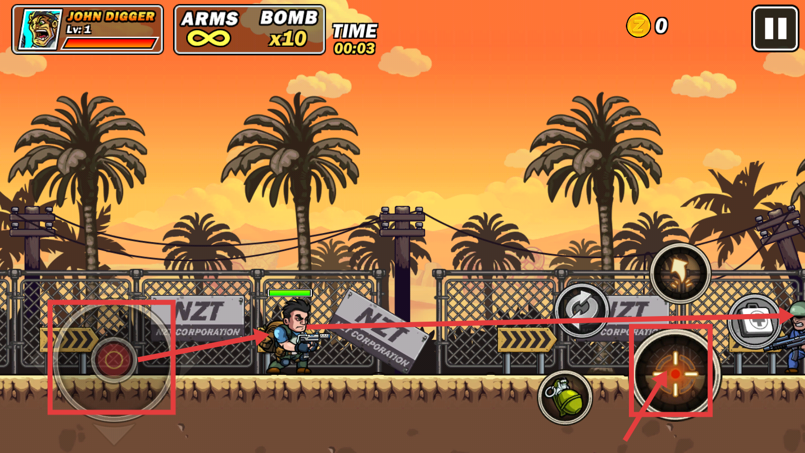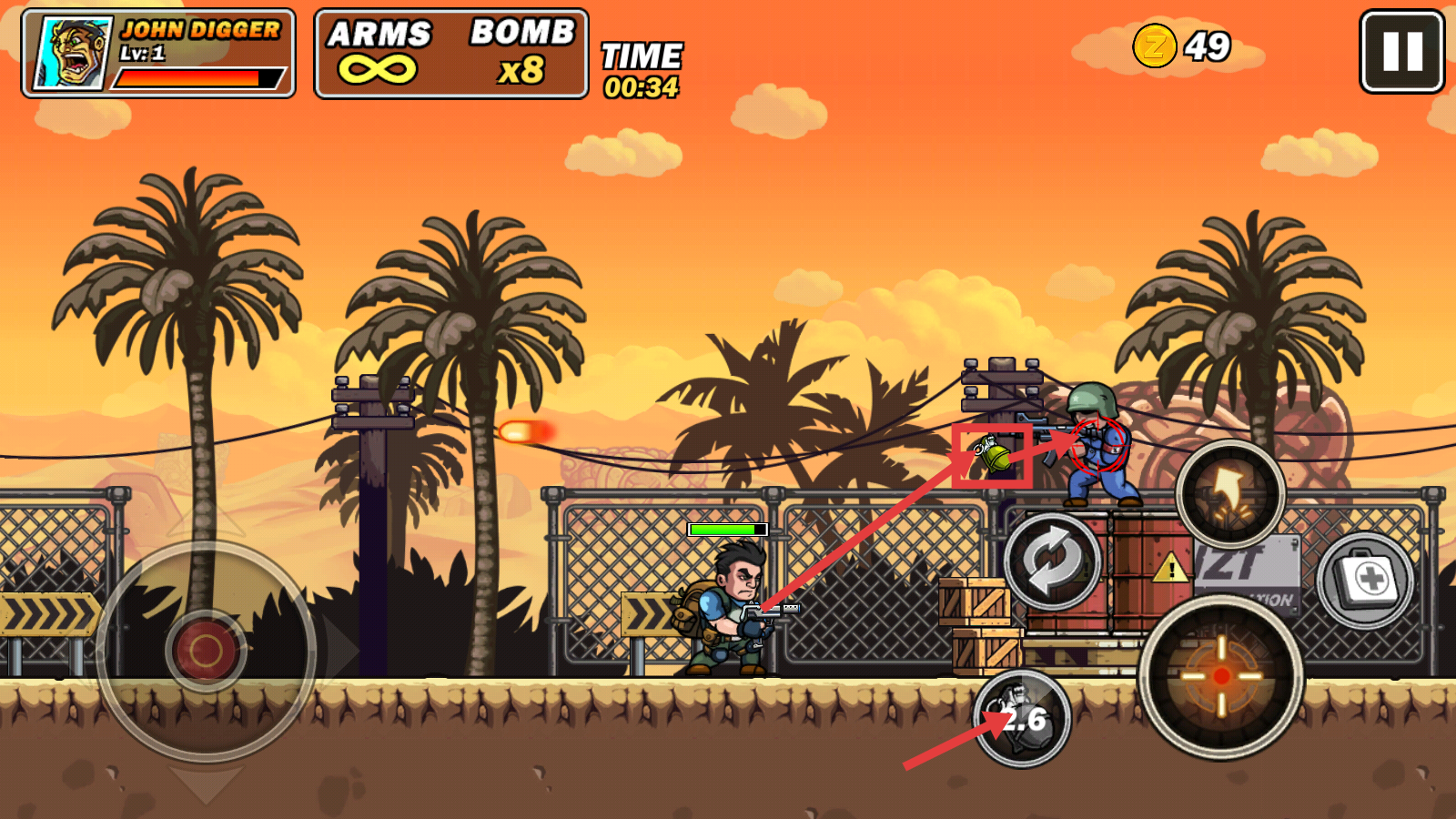 2、在战役中,通过左侧虚拟摇杆移动角色,点击右侧射击按钮攻击敌人,留意角色血量和剩余时间,合理规划战斗节奏。