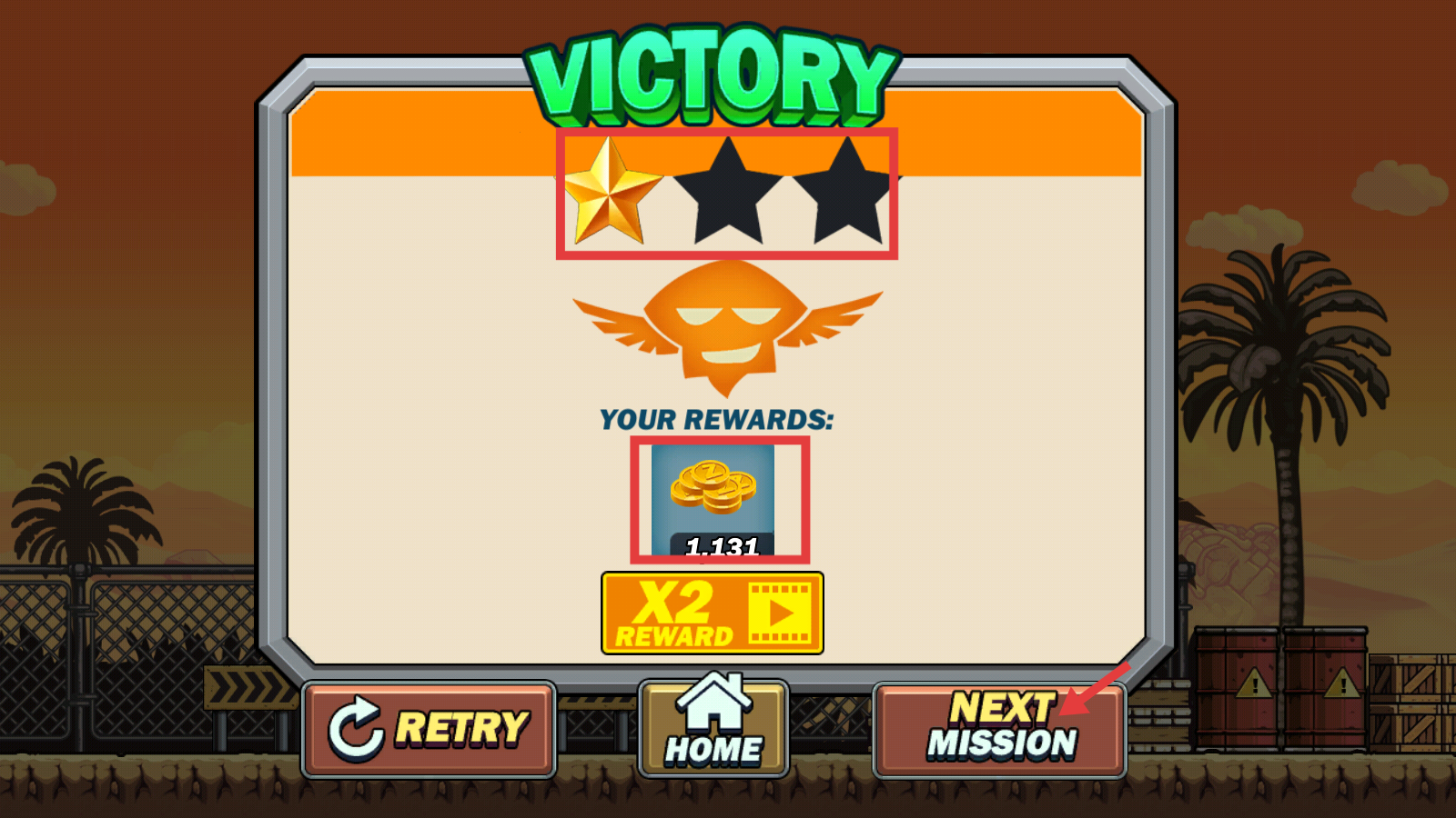4、完成任务后获得【VICTORY】星级评价和金币奖励,点击【NEXT-MISSION】继续下一个战役任务,争取更高星级评价。
