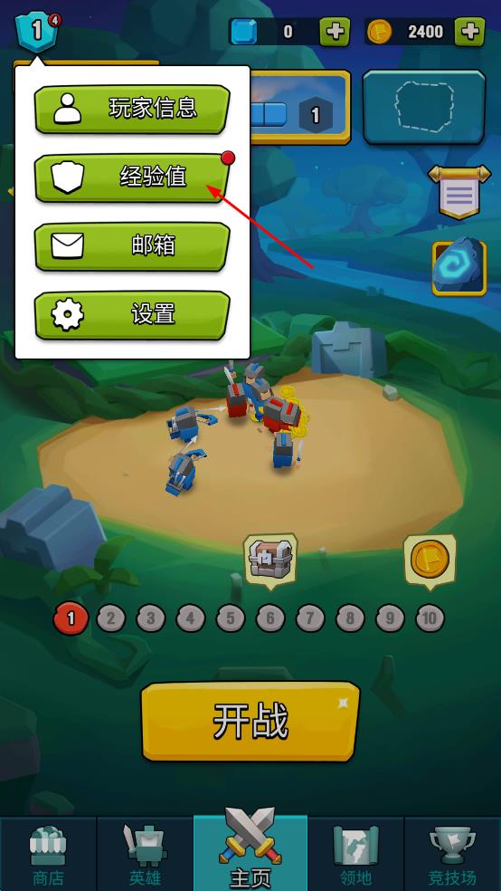 2、在游戏主页,点击左上角带有数字“1”的图标,弹出包含“玩家信息”“经验值”等选项的菜单。