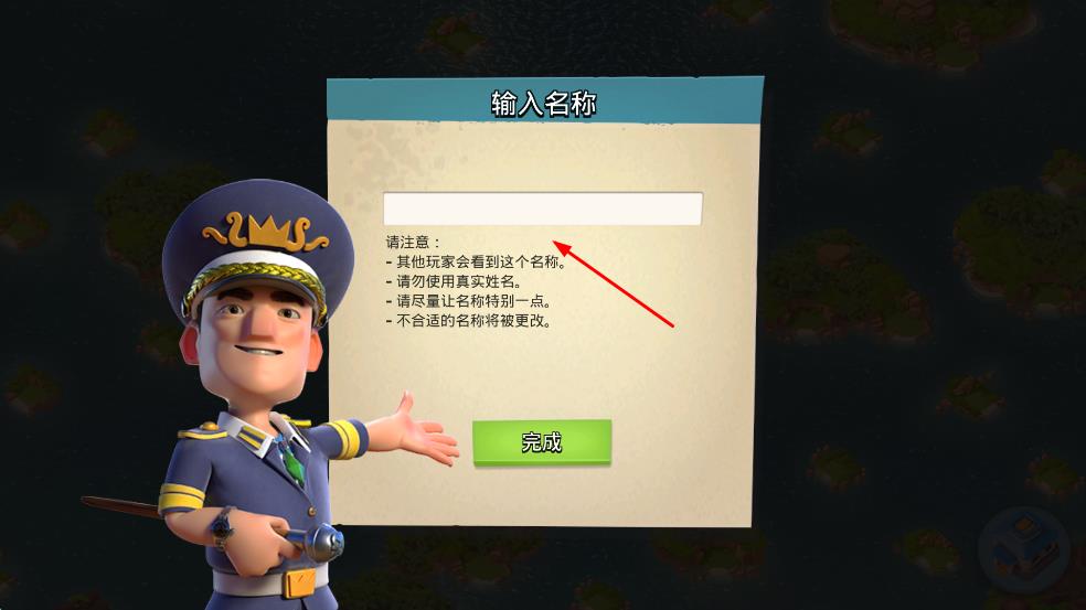 2、在游戏名称设置界面的输入框中,填写好游戏名称,然后点击“完成”按钮。