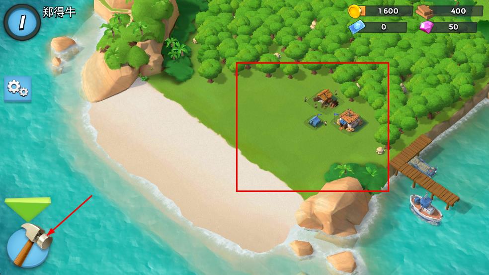 4、战斗结束后,回到岛屿界面,点击左下角的锤子图标,可进行建筑相关操作。