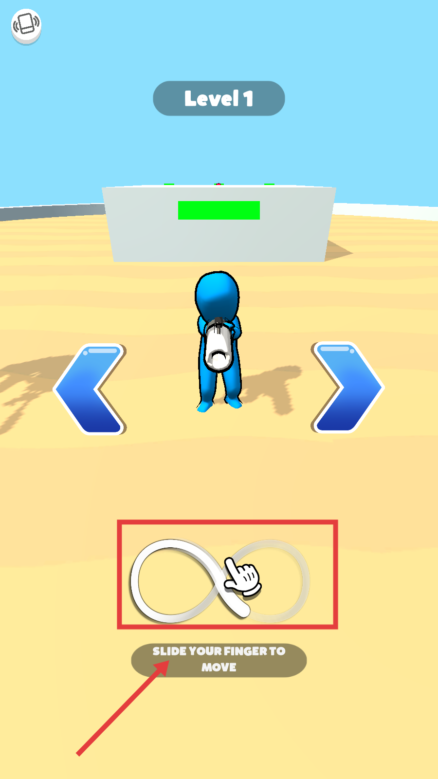 1、在【Level-1】,按照【SLIDE-YOUR-FINGER-TO-MOVE】提示滑动操作,控制角色移动,熟悉操作后开启战斗。