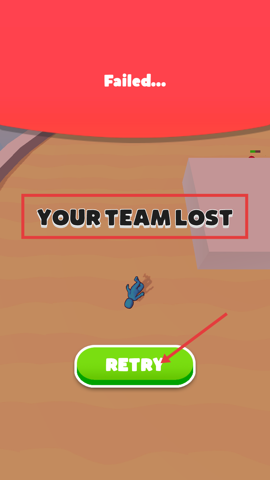 4、若显示【YOUR-TEAM-LOST】,点击【RETRY】重新挑战,总结经验调整策略,再战争取胜利。