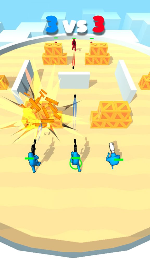 2、参与【3-vs-3】战斗,协同队友攻击红色敌人,利用地形掩护,逐步消灭敌方单位,推进战局。