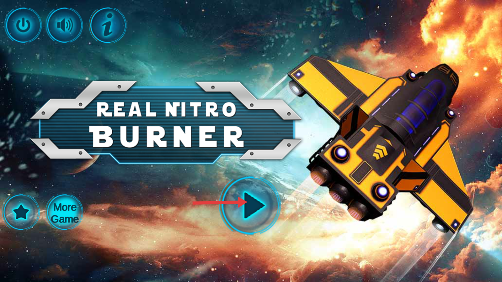 1、进入游戏先点击【REAL-NITRO-BURNER】界面的开始按钮,开启太空飞行挑战,可先熟悉界面功能再出发。