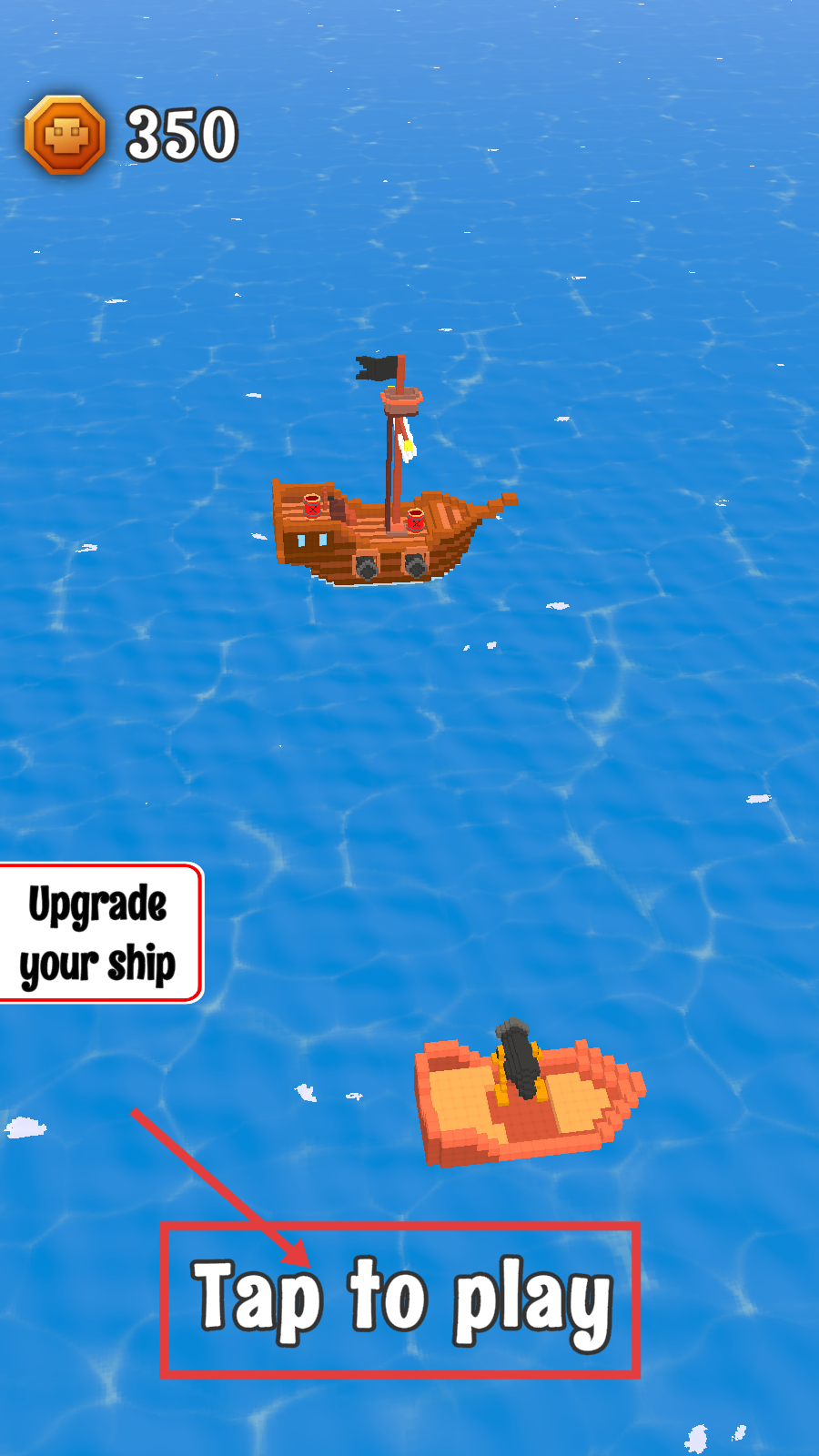 1、点击【Tap-to-play】开始游戏,可升级船只,开启海上对战任务。