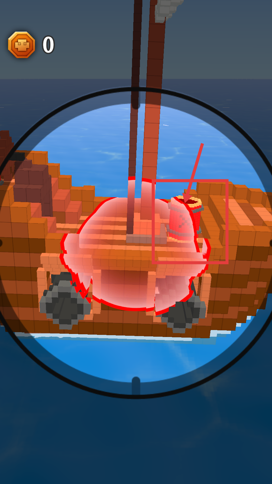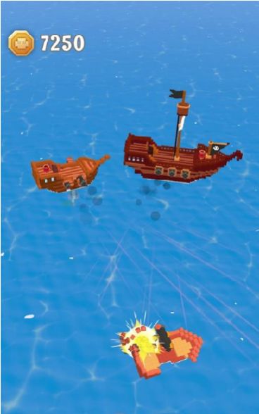 3、瞄准敌方船只的关键部位,精准射击,摧毁目标以推进关卡。
