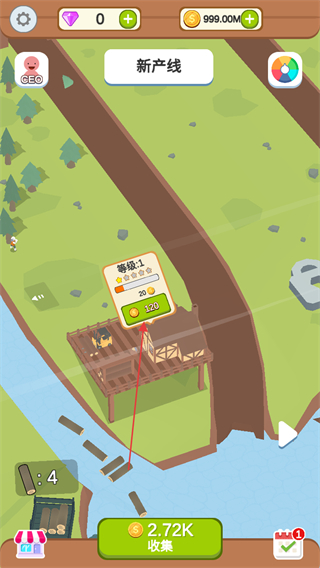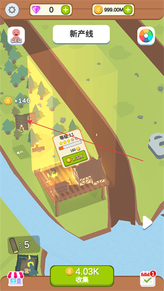 3、观察画面中出现的其他可升级元素,如伐木区域等,点击并消耗金币升级,增加金币产出。