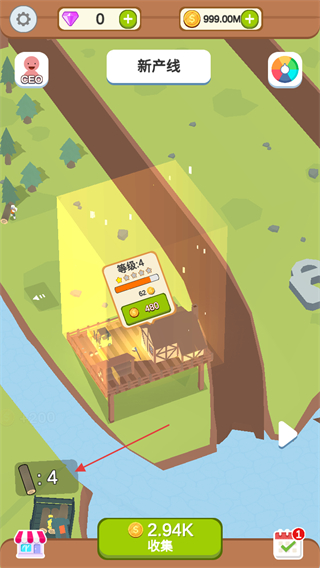 1、进入游戏,点击工厂建筑上显示的升级提示框,花费对应金币进行升级,提升生产效率。