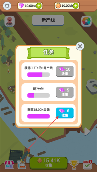 1、查看任务界面,点击对应任务后的收集按钮,完成任务获取钻石奖励。