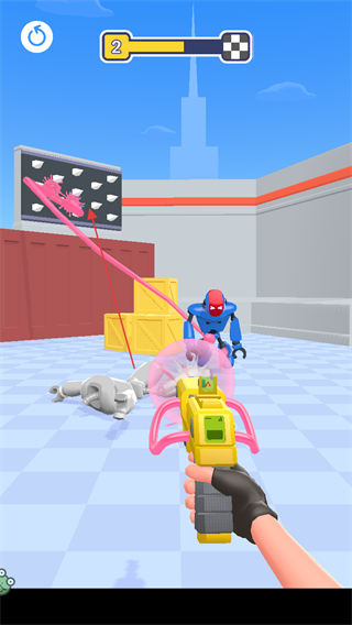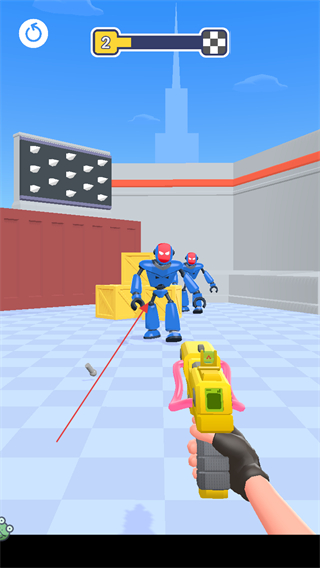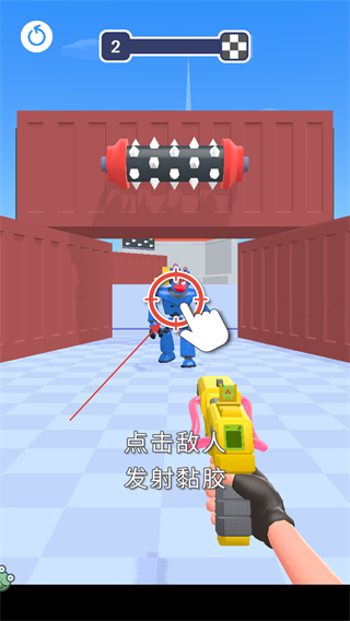 2、遇到多个敌人靠近时,滑动屏幕调整视角,依次点击敌人发射黏胶,优先攻击近处敌人。