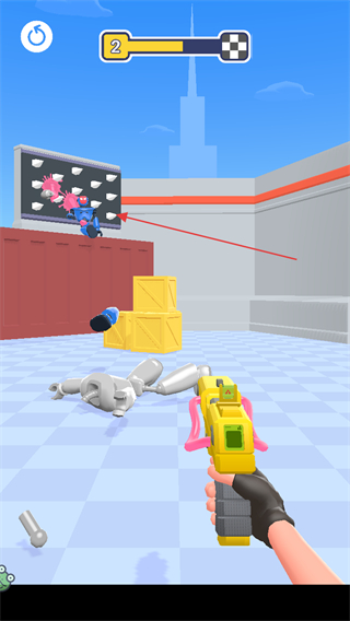 1、进入第2关,根据提示点击敌人发射黏胶,点击前方橡皮敌人进行攻击。
