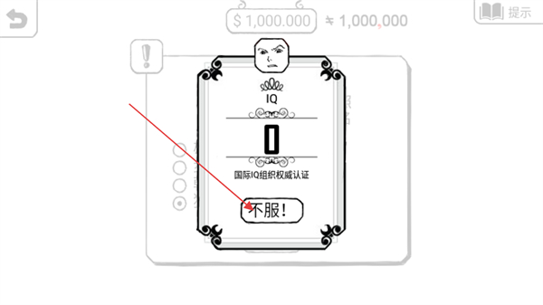 3、遇到显示IQ0的界面,点击不服!按钮,继续后续挑战。