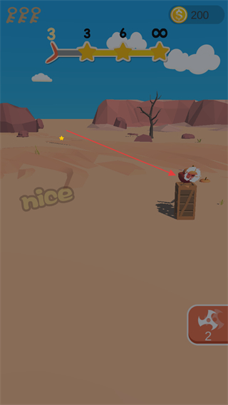 3、调整飞镖发射角度和力度,瞄准木箱,发射后出现nice提示。